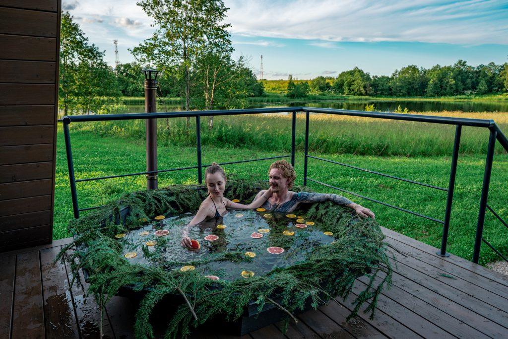 В нашем глэмпинге 10 разных дизайнерских домов с банными чанами и видом на реку.
