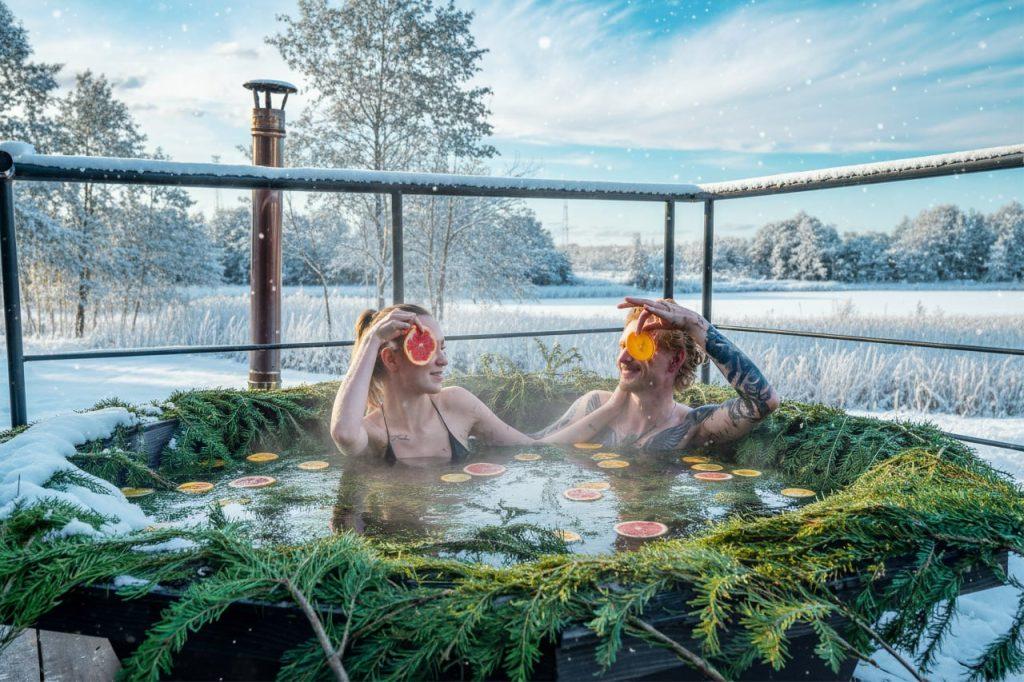 У каждого дома есть собственный чан, чтобы Вы могли погрузиться в тишину и уединение. Тепло воды снимает напряжение, возвращает спокойствие и превращает зимний вечер в маленькое личное приключение.